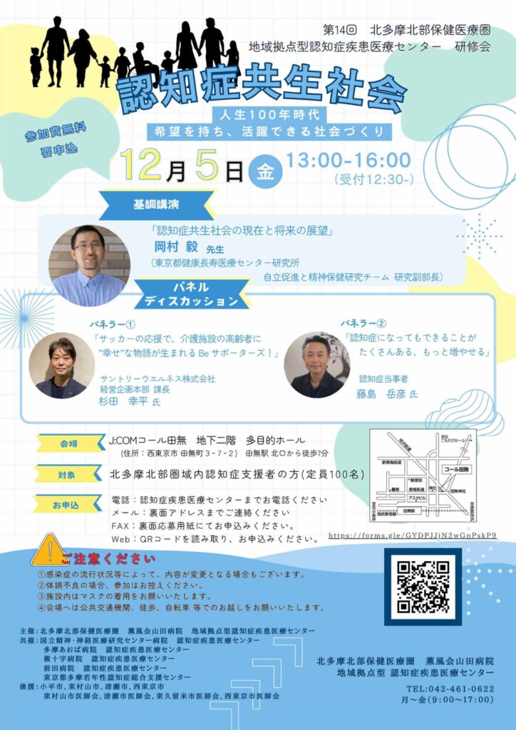 令和7年12月5日(金)に「第14回 多摩北部保健医療圏 地域拠点型 認知症疾患医療センター研修会 “認知症共生社会 ~人生100年時代 希望を持ち、活躍できる社会づくり~”」を開催致します。